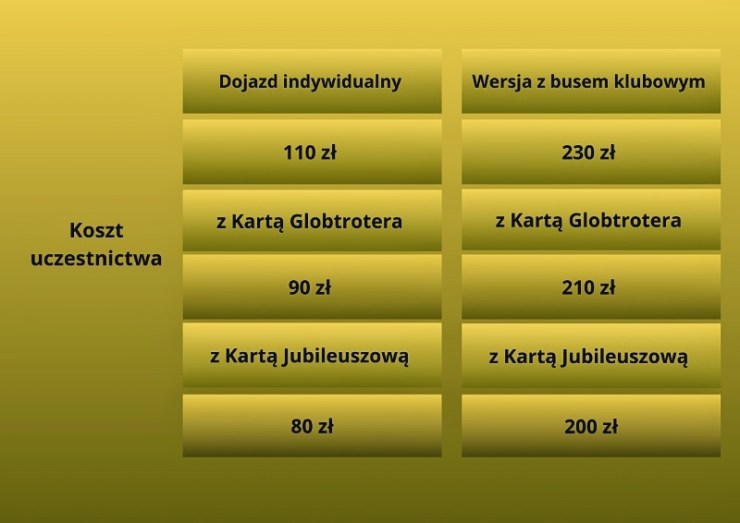 Tradycyjnie planujemy dwie wersje dojazdu: indywidualny lub busem klubowym.