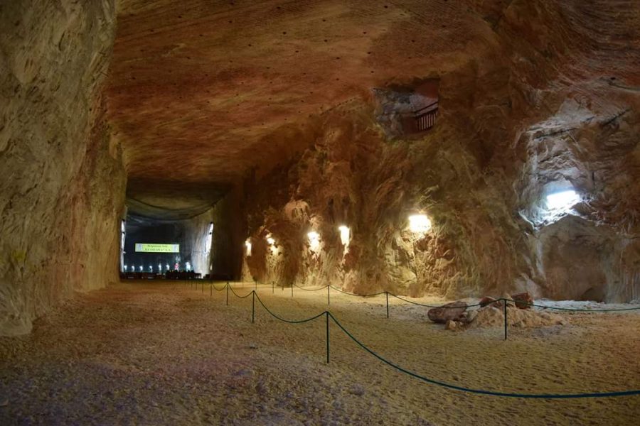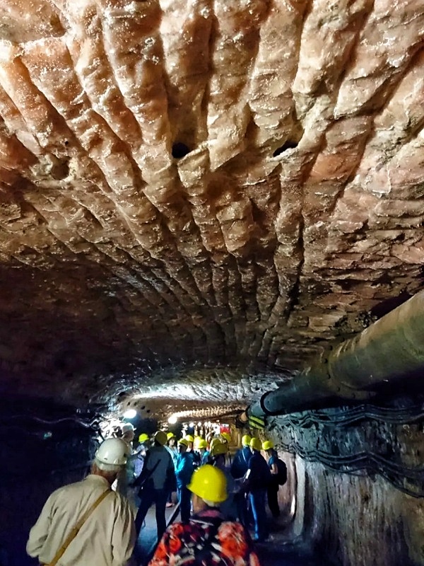 Pod koniec trasy jeszcze widok na scenę, gdzie odbywają się górnicze uroczystości, a posadzka wokół wyłożona jest – nie uwierzycie – lizawkami, czyli specjalnie przygotowaną kostką solną, która w dalszym obrocie handlowym przeznaczona jest do lizania zarówno przez zwierzęta gospodarskie jak i te dziko żyjące. Na końcu niespodzianka – z dużych brył różowej soli przewodnicy odłupują kilofami mniejsze bryłki, z których można wybrać sobie dowolne i zabrać ze sobą. Nie da się jednak zabrać jej zbyt wiele – sól okazuje się bowiem bardzo ciężka.