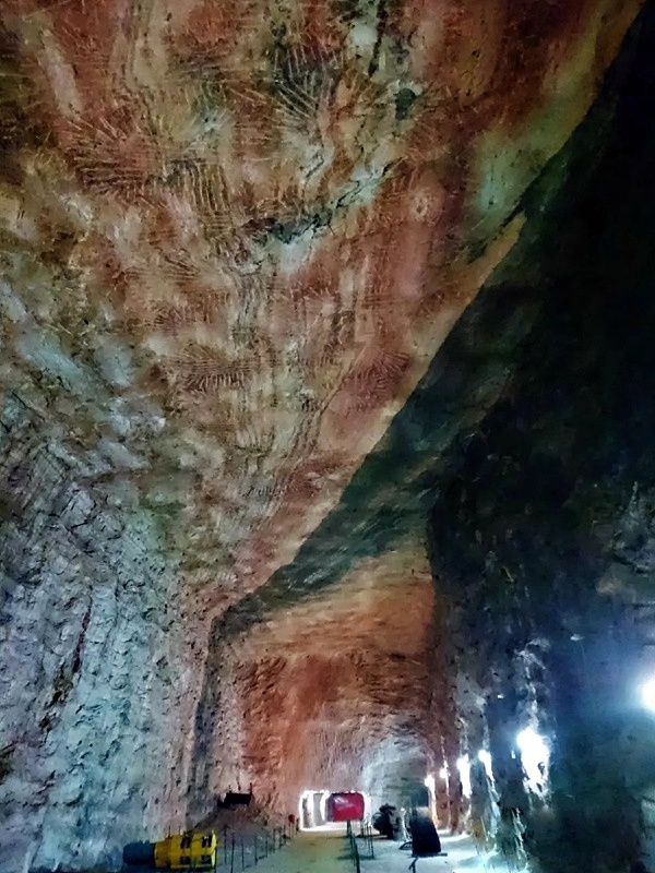 Na dolnym poziomie, 600 metrów pod ziemią zobaczymy m.in. główne korytarze transportowe z wagonikami wypełnionymi solnym urobkiem, kaplicę św. Kingi – patronki górników solnych, przodek czyli miejsce, gdzie ładunkami wybuchowymi rozkrusza się solną skałę, galerie widokowe i olbrzymie groty po wyrobiskach. Wszystko w postindustrialnym klimacie tworzącym niesamowite widoki, spotęgowane faktem, że tutejsza sól w odróżnieniu od naszych wyobrażeń ma wszystkie odcienie różu rozkładające się na ścianach i sklepieniach w piękne pasma. Na trasie zwiedzania oglądamy też wystawę, gdzie zauroczyły mnie kwiatowe obrazy wykonane z soli, która w Kłodawie potrafi mieć wszystkie odcienie tęczy. Niesamowite!
