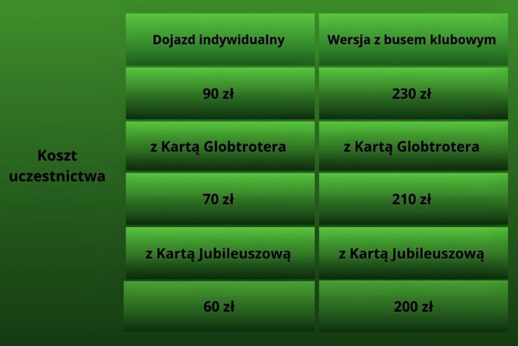 Tradycyjnie planujemy dwie wersje dojazdu: indywidualny lub busem klubowym.