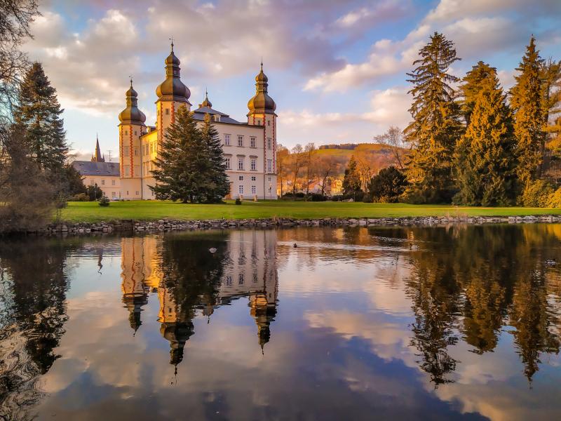 W drodze do Jiczyna zatrzymany się na krótko w miasteczku Vrchlabí i obejrzymy niewielki skansen – oddział Muzeum Karkonoskiego. Zerkniemy też na ulokowany w malowniczym parku renesansowo-barokowy pałac, wybudowany przez Kryštofa Gendorfa królewskiego eksperta i zarządcę górniczego w połowie XVI wieku. Obecnie mieści się tu urząd miasta, ale park jest dostępny dla wszystkich, a w dni robocze można nawet zajrzeć do zabytkowego holu.