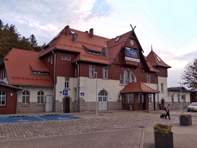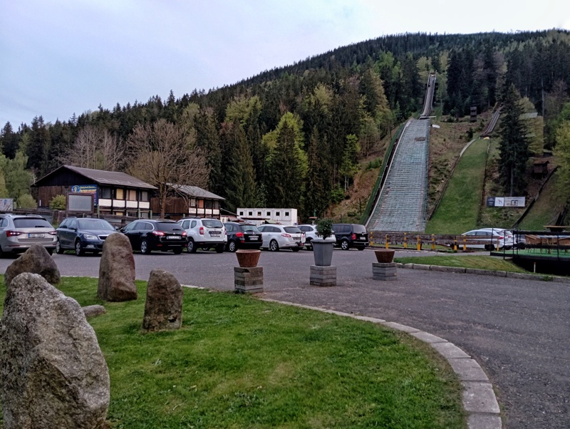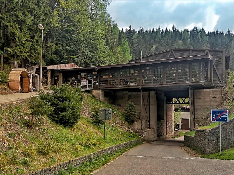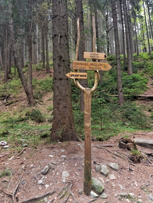 Spacer zaczynamy na obrzeżach Harrachova, przy Muzeum Górnictwa. Nie sposób tego miejsca nie zauważyć, gdyż budynek muzeum tworzy charakterystyczną bramę nad szlakiem. Dodatkowo wskazuje na niego wagonik kolejki górniczej ustawiony obok drogi.