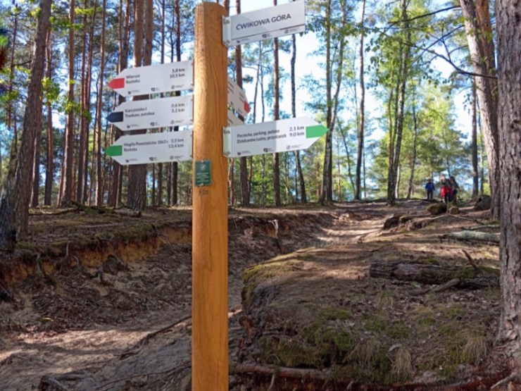 Puszcza Kampinoska rozciąga się na wprawdzie na Nizinie Mazowieckiej. Ale to wcale nie oznacza, że jest zupełnie płaska.🙂Na trasie przejedziemy przez całkiem spore wzgórza, jako że szlak prowadzi tu przez dość wysokie wydmy. Zdrojowa Góra i Ćwikowa Góra wznoszą się na wysokość ok. 100 npm. Na szczęście nie startujemy z poziomo „0” i nie wchodzimy na sam szczyt, ale i tak kilkadziesiąt metrów różnicy wysokości będzie do pokonania.🙂